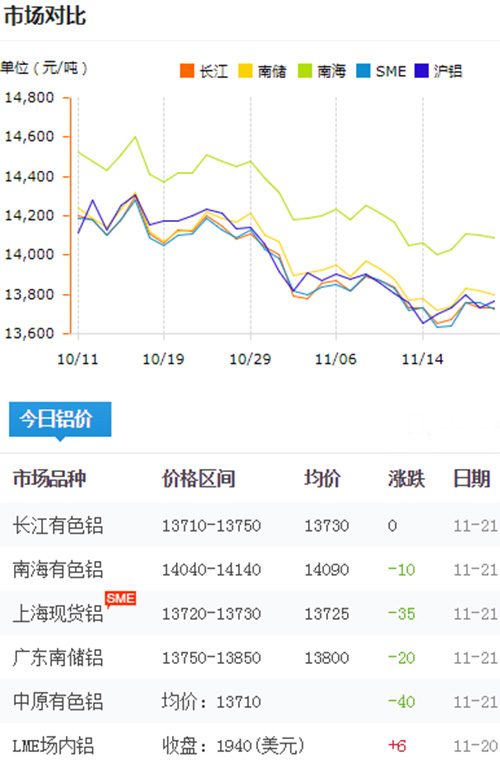 鋁錠價(jià)格今日鋁價(jià)2018-11-21
