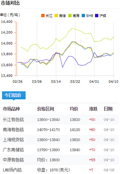 鋁錠價格今日鋁價2019-04-10