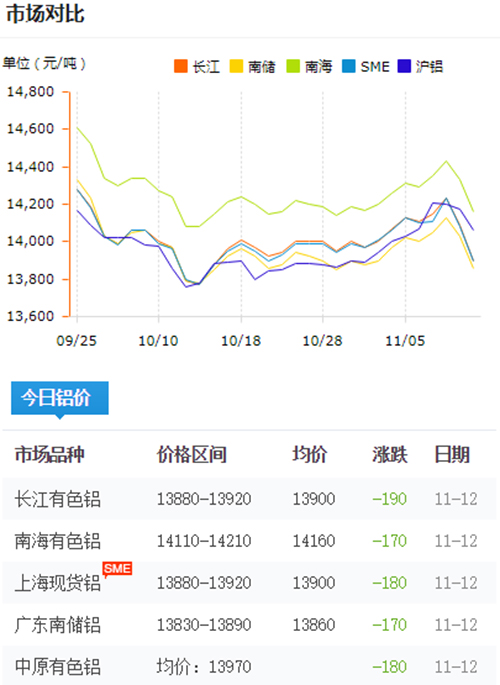 鋁錠價(jià)格今日鋁價(jià)2019-11-12