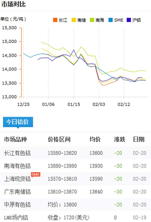 鋁錠價(jià)格今日鋁價(jià)2020-02-20