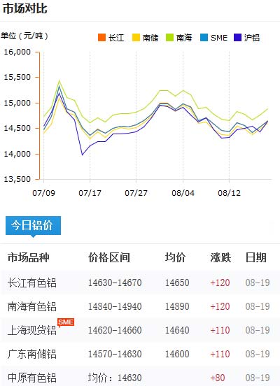 鋁錠價(jià)格今日鋁價(jià)2020-08-19