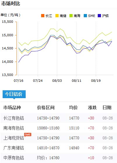 鋁錠價格今日鋁價2020-08-26