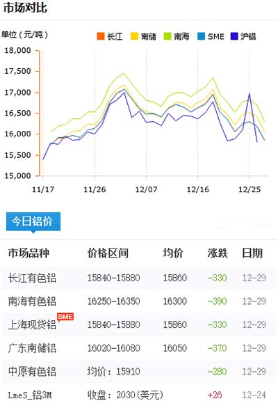 鋁錠價格今日鋁價2020-12-29