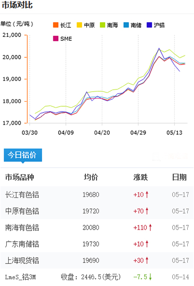 鋁錠價(jià)格今日鋁價(jià)2021-05-17