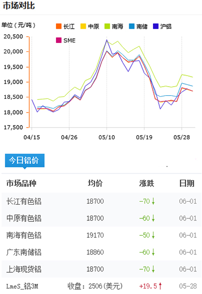 鋁錠價(jià)格今日鋁價(jià)2021-06-01