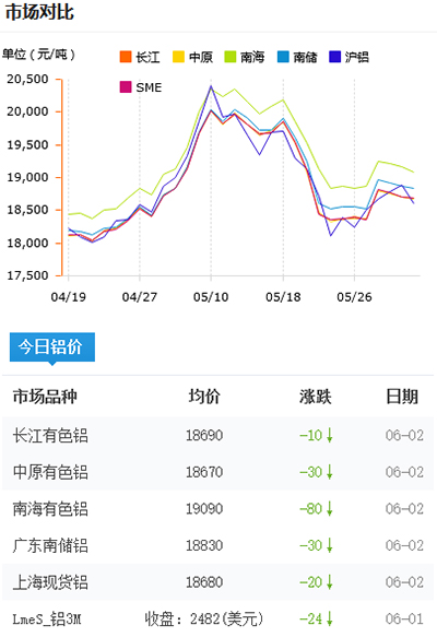 鋁錠價格今日鋁價2021-06-02