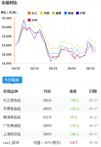 鋁錠價格今日鋁價2021-06-17