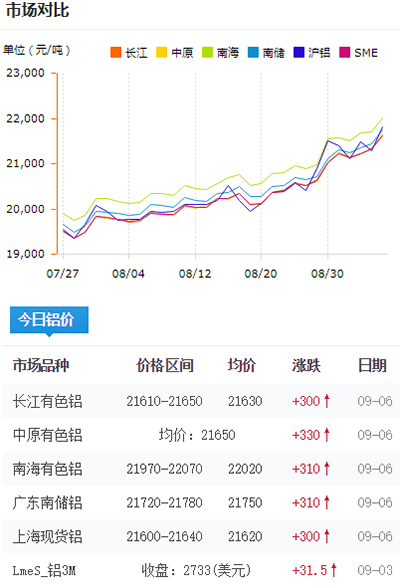 鋁錠價格今日鋁價2021-09-06