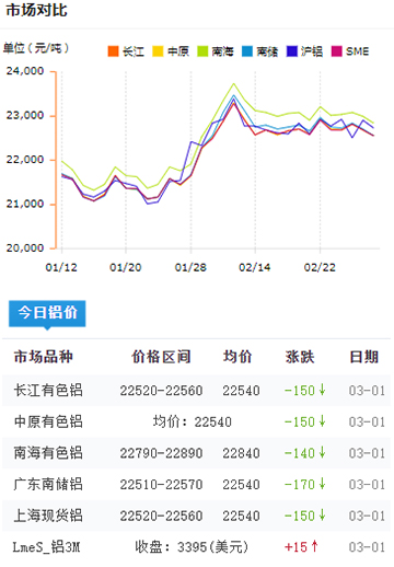 鋁錠價格今日鋁價2022-03-01