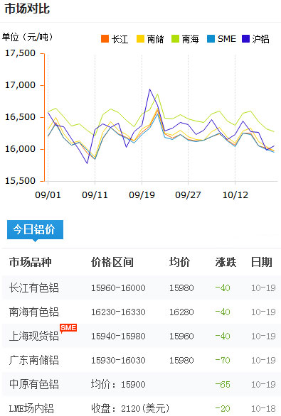 鋁錠價格今日鋁價2017-10-19