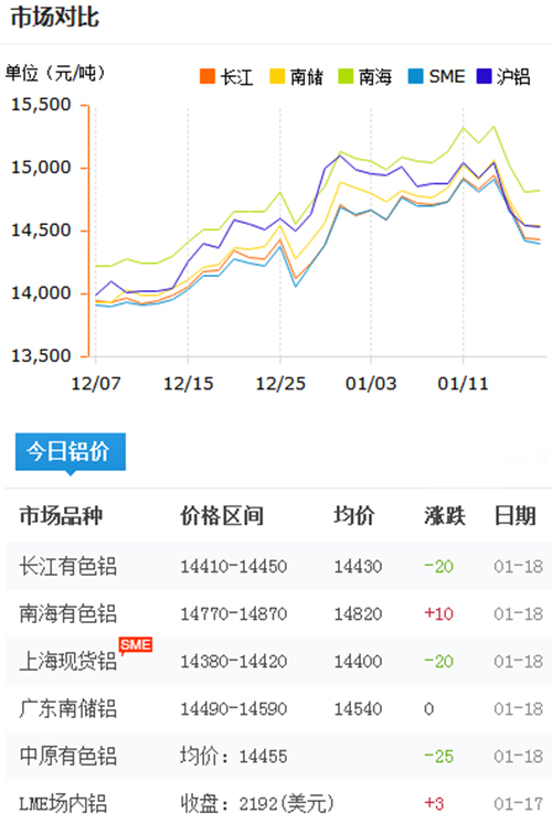 鋁錠價(jià)格今日鋁價(jià)2018-1-18