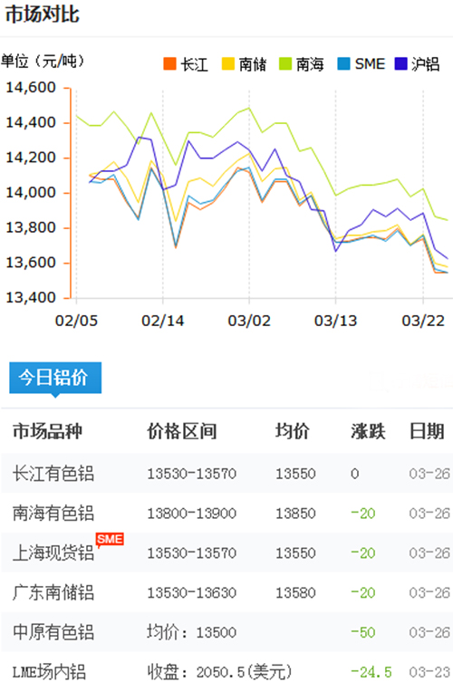 鋁錠價(jià)格今日鋁價(jià)2018-3-26