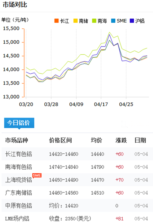鋁錠價格今日鋁價2018-5-4